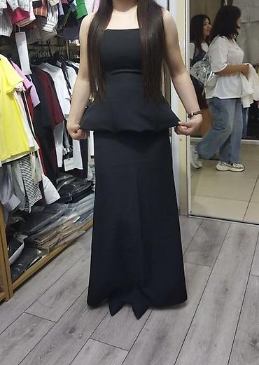 Элегантное черное вечернее платье макси с баской - Силуэт