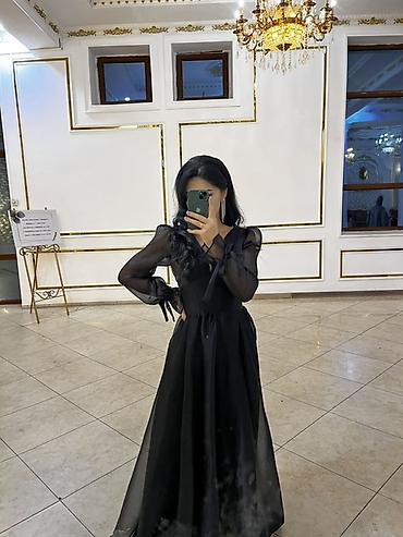 Элегантное черное вечернее платье в пол.