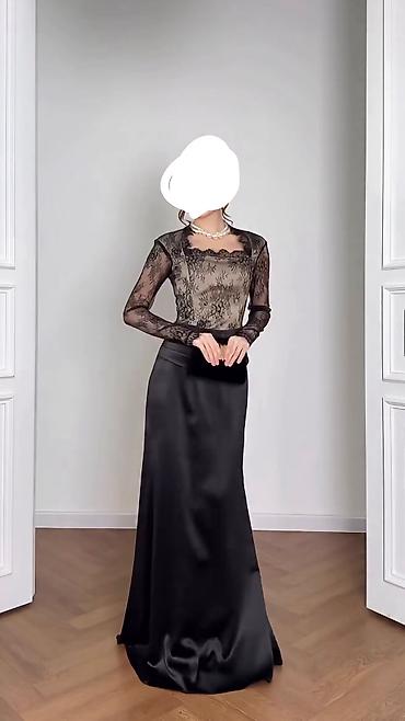 - Длинная сатиновая юбка в пол с мягким блеском, эффектно струится.