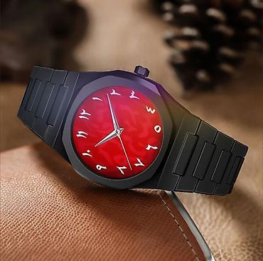 Элегантные часы с выразительным дизайном для тех, кто ценит индивидуальность. Глубокий красный циферблат с восточными (арабскими) цифрами придаёт модели уникальный характер, а строгий чёрный корпус подчёркивает современный стиль.