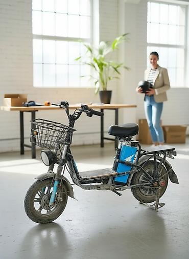 Электровелосипед/электроскутер компактного формата для города и хозяйственных задач. Основные особенности: - Привод на заднее колесо с мощным мотор-колесом - Питание от аккумуляторного блока (расп...