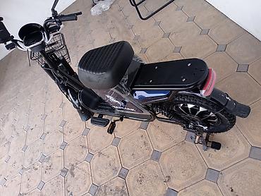 Электровелосипед-скутер с сиденьем - Компоновка «мопед»: высокая рама, удобное мягкое седло, регулируемый подсидельный штырь. - Электропривод на заднем колесе, цепная передача, педали для помощи н...