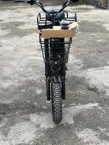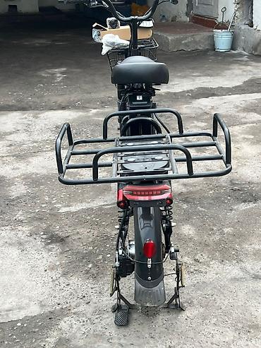 Электровелосипед-грузовичок (электроскутер) с широкими внедорожными шинами Основные особенности: - Прочная рама с передней и задней грузовыми площадками: передняя корзина и большой задний багажник...