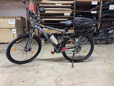 Электровелосипед горного типа (MTB) с центральным расположением аккумулятора на раме. Основные характеристики: матор350ваттный аккумулятор 36вольт.запас хода 40-50км с ассистентом до 60км хватит....