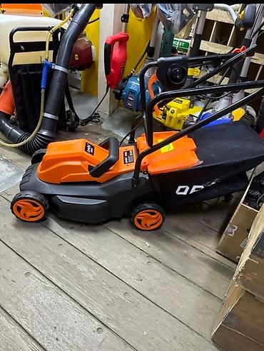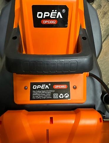 Электрическая газонокосилка OPEЯ OP53002 в оранжево-сером корпусе предназначена для ухода за газоном. Оснащена регулировкой высоты среза в диапазоне 25, 45 и 60 мм. Мощность двигателя составляет 1200 Вт, что обеспечивает скорость вращения без нагрузки до 3300 об/мин. Ширина среза 320 мм позволяет эффективно обрабатывать небольшие и средние участки. Травосборник из черной ткани, расположенный сзади, собирает скошенную траву, обеспечивая чистоту газона. Инструмент питается от сети 220-240 В.