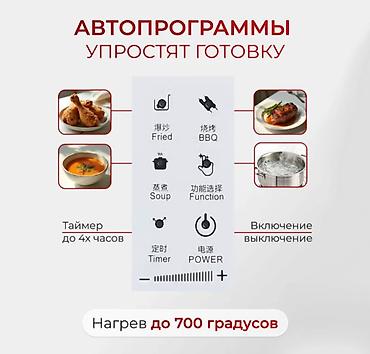- Автопрограммы: Fried (жарка), BBQ (гриль/запекание), Soup (суп/тушение), Function (выбор режимов), Power (вкл/выкл).