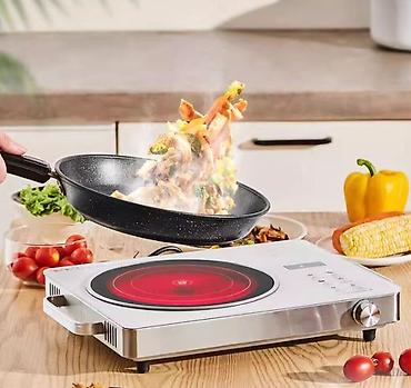 Практично на даче, в общежитии, офисной кухне или как дополнительная конфорка дома. Быстрый старт и точная регулировка нагрева для любых задач — от деликатного томления до интенсивной жарки.