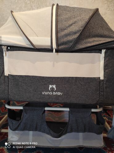 - Нейтральный серо-бежевый текстиль, логотип INING BABY на боковине.