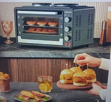 Многофункциональная электрическая мини-печь SOKANY SK-033 с двумя встроенными электрическими конфорками и механическим управлением. Оснащена прозрачной дверцей для удобного наблюдения за процессом приготовления и антискользящими ножками для устойчивости. Идеально подходит для приготовления выпечки, запекания различных блюд и разогрева пищи, а также для использования в малогабаритных кухнях или на даче.