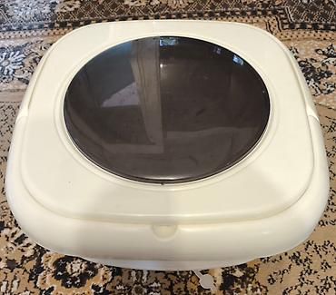 - Компактная неавтоматическая стиралка с верхней загрузкой и прозрачной крышкой.