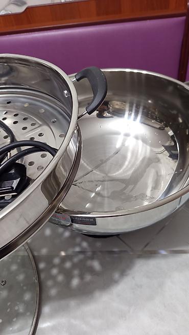 Электрическая-казан TЕХНОМИР Размеры 36см и 34см. - Конструкция 3-в-1: глубокая чаша-казан + два яруса-поддона для приготовления на пару + крышка. - Материал: нержавеющая сталь; крышка с металличе...