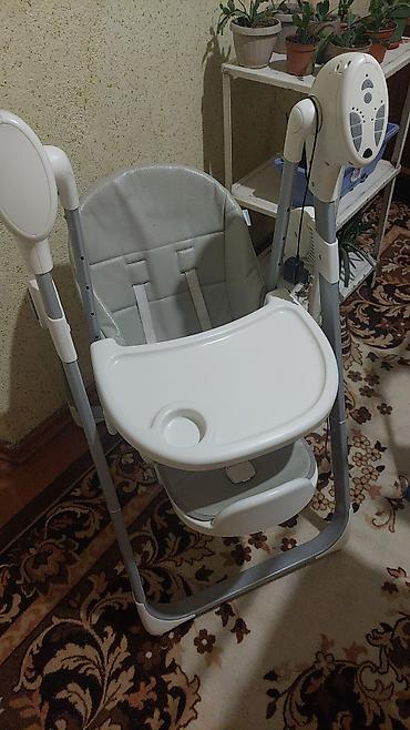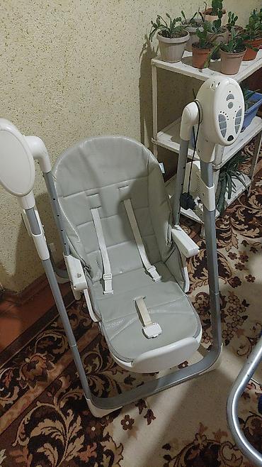 Подойдут для укачивания и кормления малыша дома: тихий электронный маятник, столик можно быстро снять, тканевый чехол легко протирается. Цвет: серо-белый.