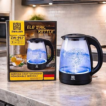 В комплекте: электрический чайник ZWILLON ZW-957 и фирменная коробка с описанием (German Craftsmanship / Honorable Service). Идеален для дома и офиса: наглядная подсветка, удобное вращающееся основание и прозрачная колба для контроля уровня воды.