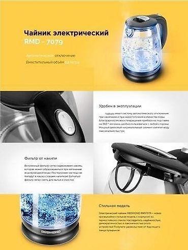Электрический чайник REDMOND 7079 отличное приобретение от ведущего производителя. Представленная модель имеет мощность 1800 Вт и кипятит максимальный объем жидкости в 2.2 литров в считанные минуты. Стеклянная колба чайника позволит вам в полной мере насладиться ароматом любимых напитков, не ощущая во вкусе посторонних привкусов. При закипании воды аппарат автоматически отключится. К тому же устройство располагает функцией защиты от включения без необходимого количества воды.