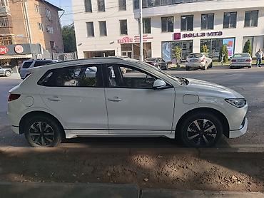 Электромобиль седан, белый цвет, на номерах KG. Основные особенности: - Полностью электрический привод, бесшумное и экономичное передвижение - Аэродинамический закрытый «гриль» спереди, характерны...
