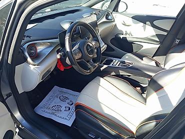 - Кузов: 5‑дверный хэтчбек, аэродинамичный дизайн с двухцветной окраской (серо‑чёрный или бело‑чёрный), контрастные акценты неона/красного, спойлер на крыше, скрытые задние ручки, панель с надписью Build Your Dreams, сквозная задняя оптика.