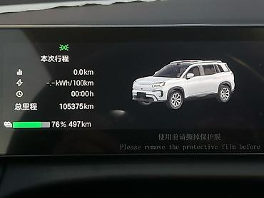 - Виртуальная приборка с данными по поездке и батарее; на фото показан запас хода 497 км при уровне заряда 76%.