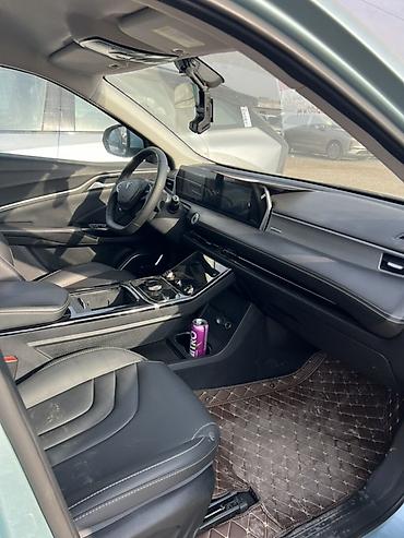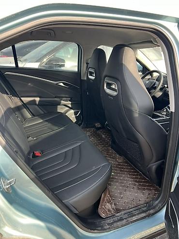Электрический кроссовер Neta U в светло-голубом цвете. Автомобиль отличается современным дизайном с интегрированными светодиодными фарами и задними фонарями, создающими узнаваемый силуэт. Зарядный порт расположен на переднем крыле, что указывает на электрическую силовую установку. Салон оснащен цифровой приборной панелью, большим центральным дисплеем и многофункциональным рулевым колесом, что обеспечивает комфорт и удобство управления. Дизайн экстерьера включает легкосплавные диски и плавные линии кузова. Этот кроссовер представляет собой практичное решение для городской езды и повседневного использования.