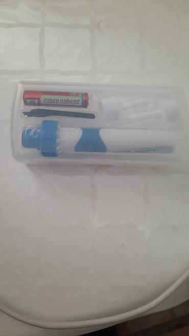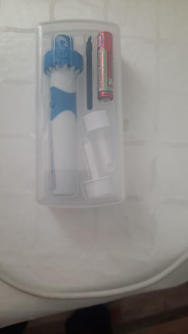 Новый электрический прибор для чистки ушей, выполненный в бело-голубом цвете, поставляется в прозрачном пластиковом футляре для удобного хранения и транспортировки. В комплект входят несколько сменных насадок, что позволяет обеспечить гигиеничность использования. Питание осуществляется от батарейки типа АА, которая также входит в набор. Устройство предназначено для бережного и эффективного удаления ушной серы, способствуя поддержанию чистоты ушного канала. Компактный размер делает его удобным для использования дома и в поездках.