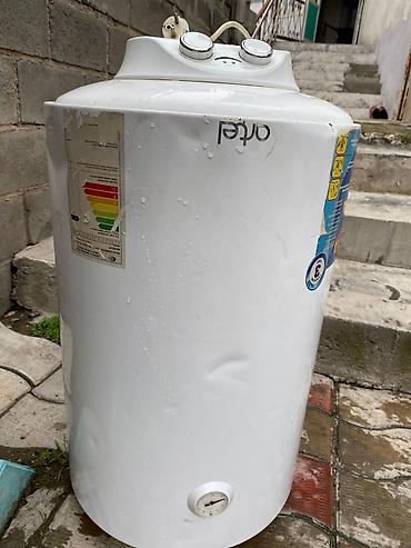 - Объем бака: ориентировочно 80–100 л (габариты стандартного «большого» цилиндрического бойлера).