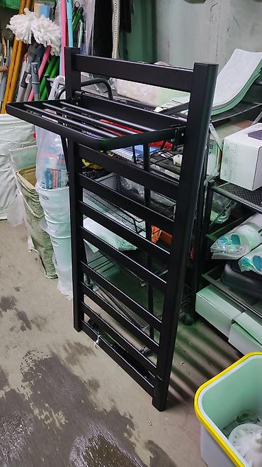 - Конструкция: настенный формат, горизонтальные перекладины для сушки, сверху удобная полка для полотенец и аксессуаров.