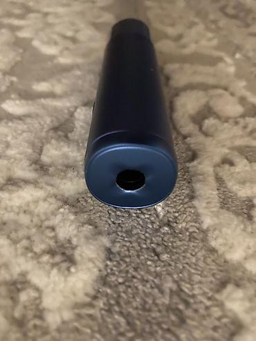 - Компактный цилиндрический корпус с матовым покрытием, цвет — темно‑синий