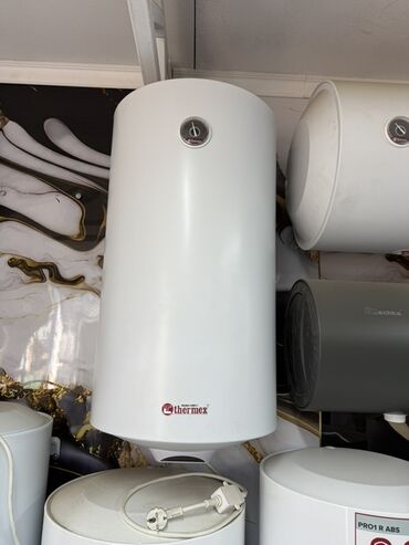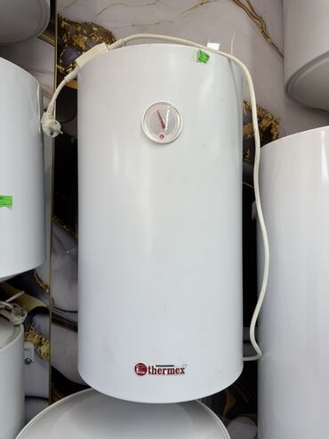 Белый электрический водонагреватель цилиндрической формы
