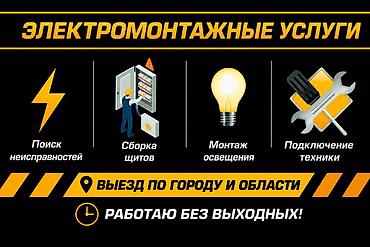 ЭЛЕКТРИК Электрические работы под ключ Выполняются все виды услуг электрика: - Электромонтаж: разводка и подключение кабелей, сборка и установка электрощитов, автоматов и УЗО. - Установка розеток...
