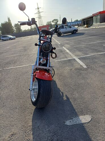Электро скутер, батарейка 48V 70A литевая. Одной зарядки хватает на 100км. Мощность двигателя 2000w, разгоняется до 50 км/ч. Дополнительно сделан апгрейд. Неоновые линзы, сидения на двоих, дополнит...