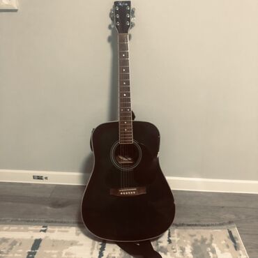 Подойдет для игры без подключения и для выступлений через усилитель/акустическую систему: встроенная электроника позволяет настраивать инструмент и корректировать звучание на ходу. Классический дредноут дает мощный, объемный звук с хорошими басами и проекцией. Черное глянцевое покрытие с контрастной окантовкой выглядит строго и эффектно.
