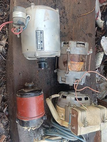 - Два коллекторных/универсальных двигателя малой мощности (бытовая техника/электроинструмент), с вентиляционными окнами, на одном сохранена заводская табличка.