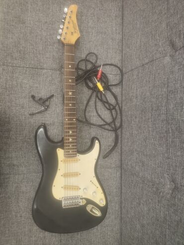 Электрогитара формата Stratocaster с кабелем