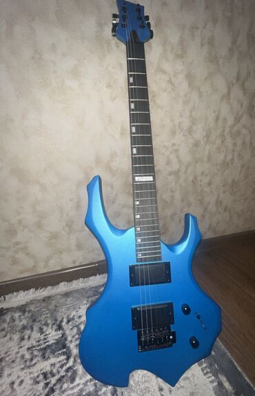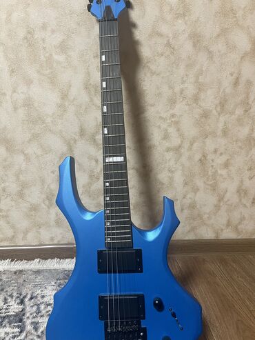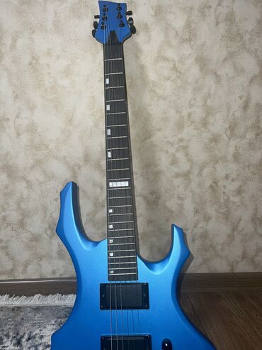 Электрогитара, 6-струнная, в эффектном синем цвете и с необычной формой.Отлично подойдёт как первая электрогитара.