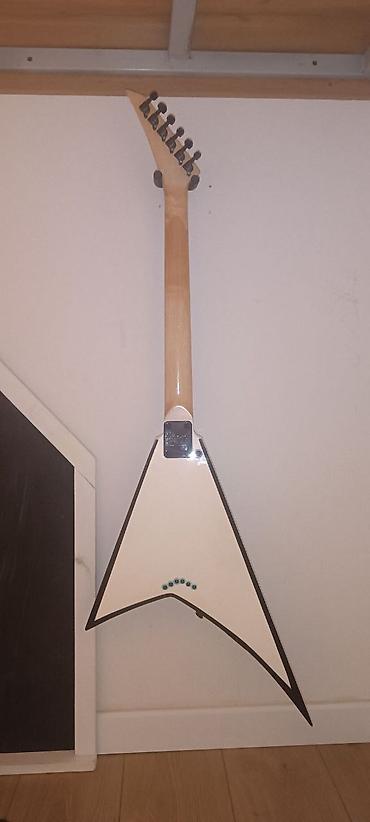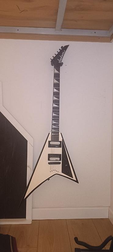 - Колки на одной стороне головки грифа; логотип Jackson на черной мензурной пластине.
