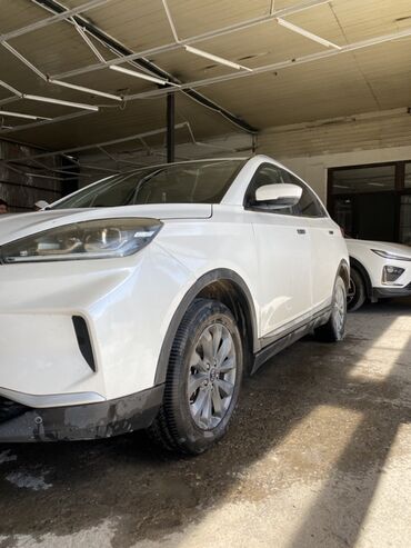 Автомобиль на киргизских номерах (05 KG, 422 ADG), белый салонно‑черный интерьер, аккуратный городской кроссовер на электротяге. Отличается современным дизайном, просторным салоном и богатым набором опций для ежедневных поездок.