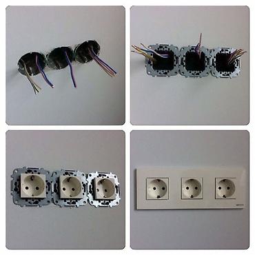 - Монтаж розеточных и осветительных линий: установка блоков из 2–4 и более розеток, выключателей, слаботочных точек.