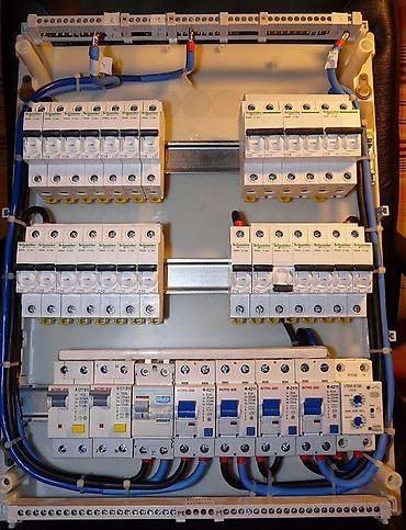 - Проектирование и сборка электрощитов: одно- и трёхфазные, распределительные и вводные. Компоновка на DIN-рейках, маркировка, аккуратная укладка проводов, установка автоматов, УЗО/дифавтоматов, реле контроля напряжения, шин N/PE.