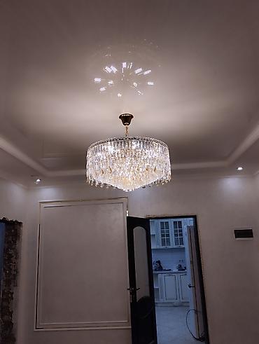 - Монтаж и подключение люстр, светильников, спотов, LED-подсветки. На фото — пример установки многорядной хрустальной люстры с аккуратной развязкой на потолке.