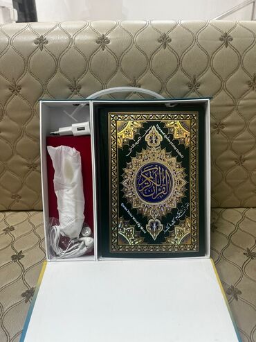 Электронный Коран с ручкой. Коран ручка - отличный подарок вашим близким, которые хотят научиться читать и понимать смысл Священного Корана. Он работает с помощью читающей ручки Вложения:5 разных исламских книги (Каида Нурания, Сахих Муслим, Сахих Аль Бухари, Книжка Хаджи Умры, Разговорный словарь, Инструкция пользователя). Языки: Английский, Арабский, Русский, Казахский, Киргизский, Татарский, Турецкий, Узбекский, Фарси, Французский, Азербайджан, Немецкий, Курдский, Дари, Индонезия, Турция и другие.