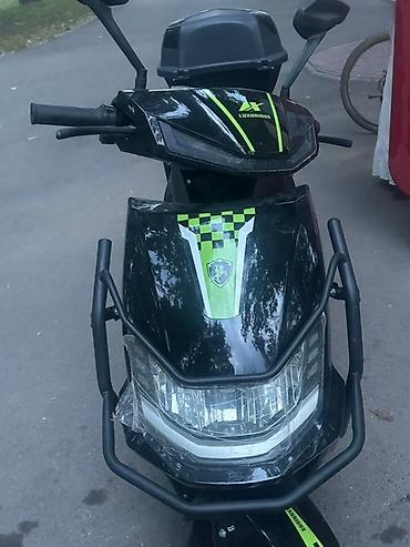 Электрический скутер черного цвета с зелеными акцентами, предназначенный для городского передвижения. Оснащен яркой передней фарой для хорошей видимости. Передняя часть скутера имеет стильный клетчатый узор и эмблему в виде льва. Защитные дуги, установленные по бокам, обеспечивают дополнительную безопасность. Удобное сиденье обеспечивает комфорт во время поездок, а вместительный задний кофр предлагает место для хранения личных вещей. Этот скутер идеально подходит для ежедневных поездок по городу, предлагая экологичный и удобный способ передвижения.Название бренда "LUXURIDUS" указано на рулевой части. ОБМЕН ТОЖ ПОЙДЕТ ТОК НА РАЗУМНЫЕ ТОВАРЫ
