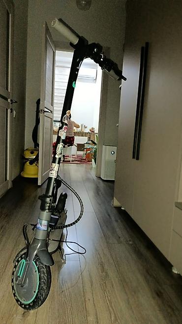 Подходит для городских поездок: устойчивые 8,5–9" колёса, низкая дека, удобная стойка. Цвет графитовый с мятными акцентами.