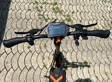 - Мощный городской/офроуд самокат в фирменной черно-оранжевой расцветке