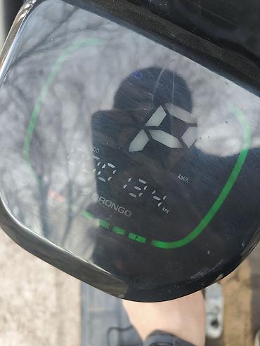 - Электродвигатель в колесе, питание от аккумуляторного блока под подножкой; на фото – зарядное устройство в комплекте.