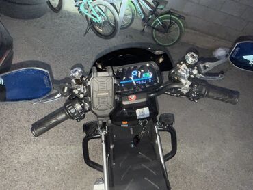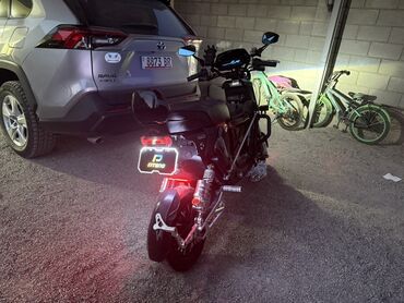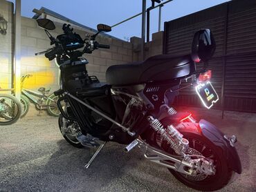 - Управление и оснащение: электрический запуск с ключом, грипсы с органами управления светом и сигналом, зеркала заднего вида, регулируемая подставка, центральная площадка под ноги.