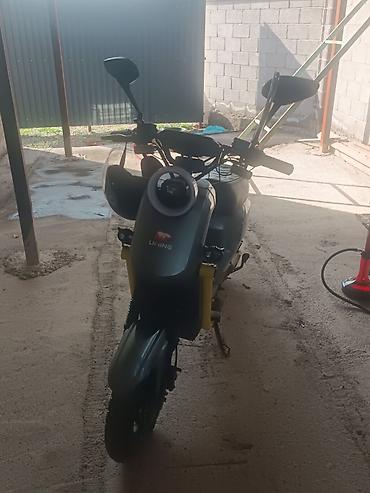 Идеален для ежедневных поездок по городу: манёвренный, простой в управлении, с достаточным местом для водителя и пассажира, возможностью установки кофра на багажник. В комплекте на фото — шлем (расположен на руле). Маркировка LiMing на боковых панелях и переднем щитке.