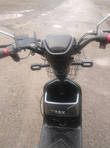 Подходит для ежедневных городских поездок, доставок и дачных маршрутов: экономичный, простой в управлении, с достаточным местом для багажа. Цвет – тёмно‑серый/чёрный, фирменные наклейки TREX.