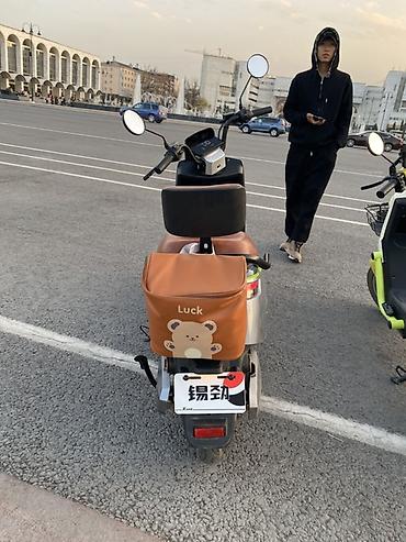 Электрический скутер Максимальная скорость-50 км/ч Запас хода 60км Грузоподъемность 300кг Амортизация Дисплей:скорость,пробег,заряд,фары,поворотники Зарядник 2 ключа 73000сом(торг на месте) Обмен ...