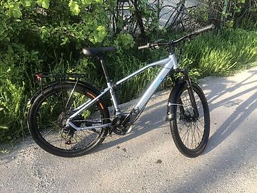 После ремонта первое фотка - Рама: алюминиевая, размер примерно M (под рост ~165–180 см), геометрия хардтейла. - Колеса: 26", покрышки полуслик/вездеход. - Тормоза: дисковые механические спереди и...