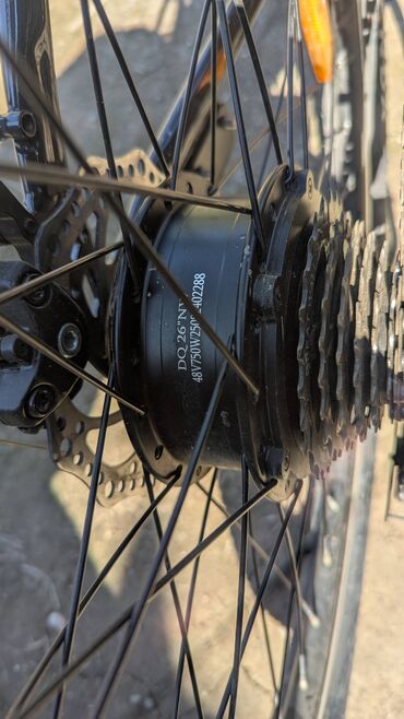 Мощьность 500 ватт 48 вольт 10 ампер. СКОРОСТЬ 50 КМ.В ЧАС. ГИДРОТОРМОЗА Электровелосипед черного цвета со спортивным дизайном, оснащенный передними и задними дисковыми тормозами для эффективного ...