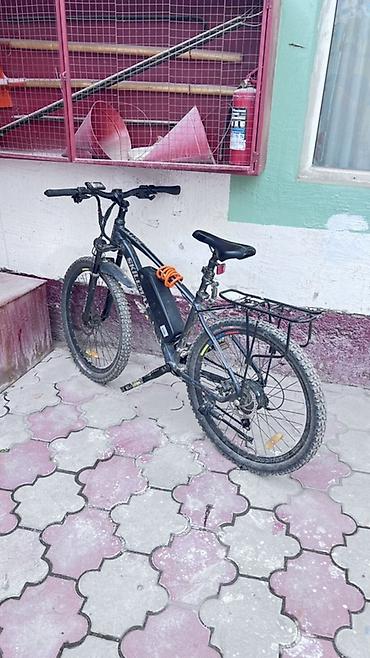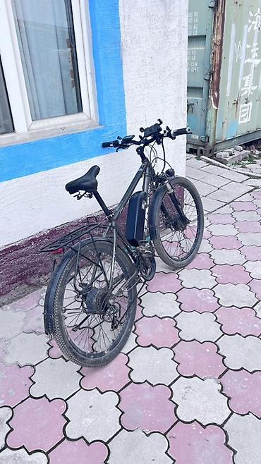 Электровелосипед на базе горного велосипеда 26" - Алюминиевая рама, размер ближе к M/L - Колёса 26", покрышки полуслики для города/грунта - Передняя амортизационная вилка - Тормоза: дисковые механ...